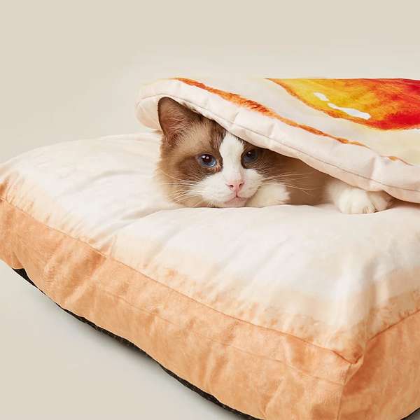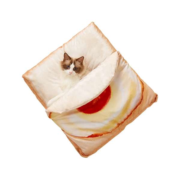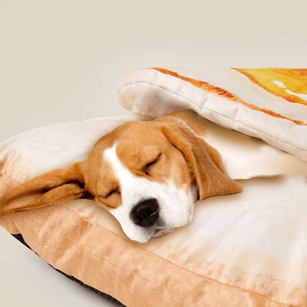 Cama con manta mullida de tela, rellena de fibra de poliéster para mascotas. Posee base antideslizante.