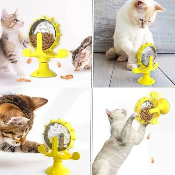 Juguete interactivo para gatos y perros con ventosa antideslizante. Libera alimento o premios al girar e incluye una campana para estimular el juego. Fácil de recargar desde la parte superior, mantiene a tu mascota entretenida y evita que el juguete se vuelque.