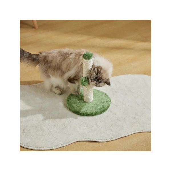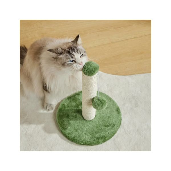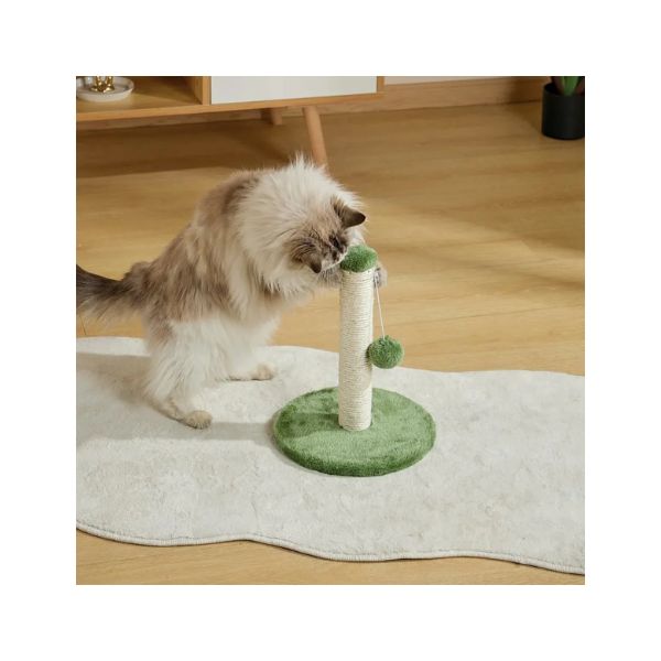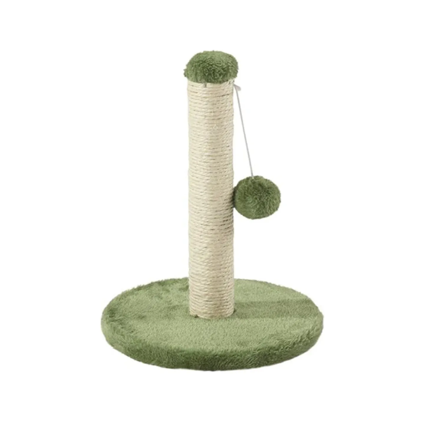 Rascador para gatos. Cuenta con una estructura suave hecha de sisal y felpa. Incluye un pompón colgante que estimula su instinto cazador, promoviendo un juego activo.