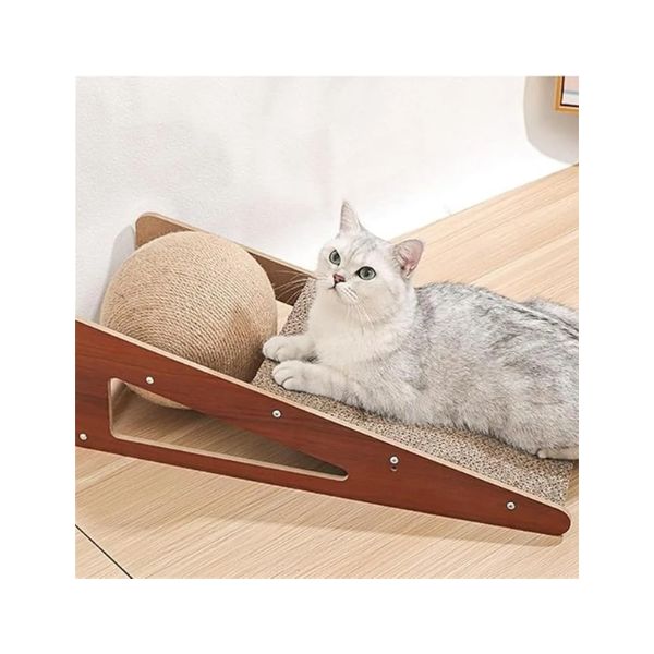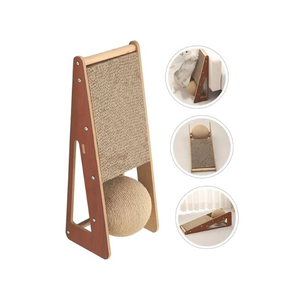El rascador puede satisfacer los instintos de rascado de los gatos y sacar uñas más saludables. Fabricado en madera, cartón e hilo sisal. Se puede usar de forma vertical u horizontal.