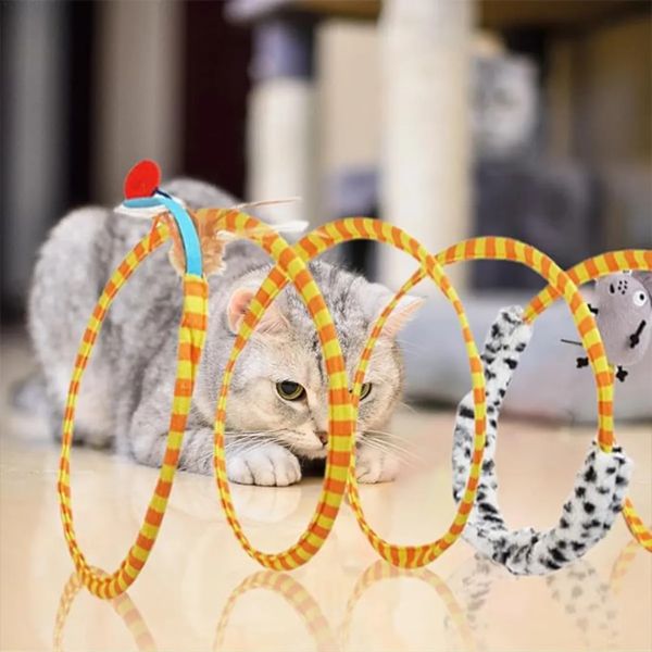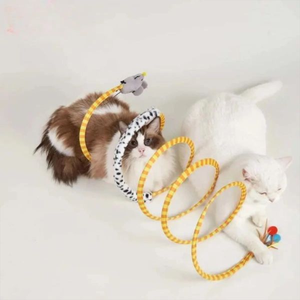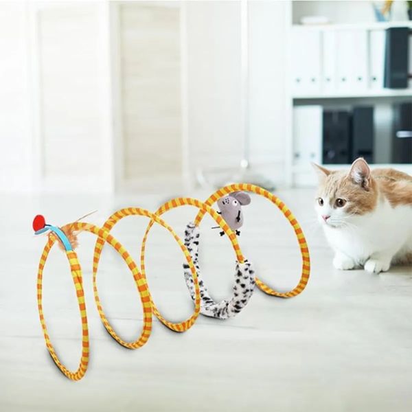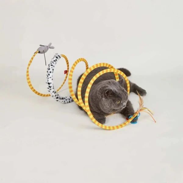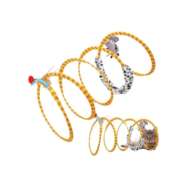 Túnel en forma de espiral plegable y con juguetes para gatos. Fofos