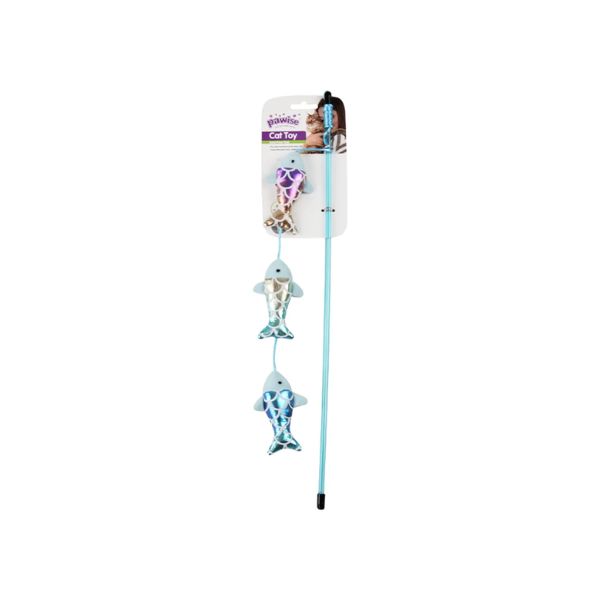 Varita con peces de peluche y hierba gatera para gato. Pawise
